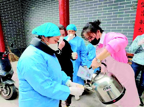 市民自发给志愿者准备了茶水。 (七星区委宣传部供图)