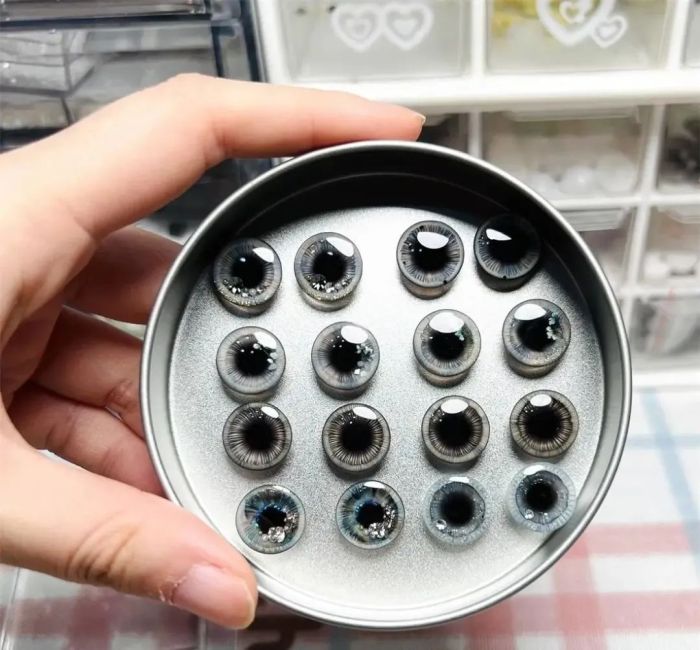 小布娃娃的眼睛依附在眼串上,一个眼串可安装4对眼片,拉动“娃娃”脑后的绳子,就可以控制眼串切换眼片。90后豆豆是一名眼片制作者,她接触“娃圈”很多年,但真正把兴趣转成全职,才刚几个月。“生娃之后有些产后抑郁,便又拾起了‘娃娃’,这一次,沉迷于制作眼片。”对豆豆来说,“养娃”是能抚慰、治愈自己的事;制作眼片,能让她“每天不出门都能感觉很充实”。