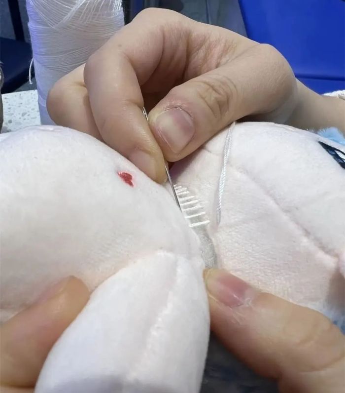 给棉花娃娃装骨架的悦悦,也是一个“用爱发电”的兼职改娃师。棉花娃娃的改造看着不难,但要做好也不容易。需要沿着“娃娃”的缝合线拆线,将一部分填充棉花掏出,加入骨架后,又将棉花塞回去,最后再进行缝合。装上骨架的棉花娃娃有了支撑,可以完成坐、靠等动作,便于“娃娘”拍照、展示。