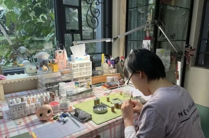 有从业者表示,如今很多新闻都放大了“娃圈”的氪金属性,其实只有极少数头部改娃师才有月入上万元、拍卖几十万元的成绩。哪怕是像“陆大侠”这样成立了工作室、妆额(化妆名额)要靠抢的改娃师,也坦言自己“没有固定收入”。
