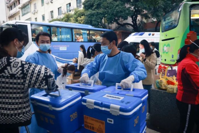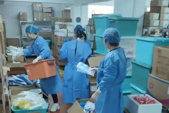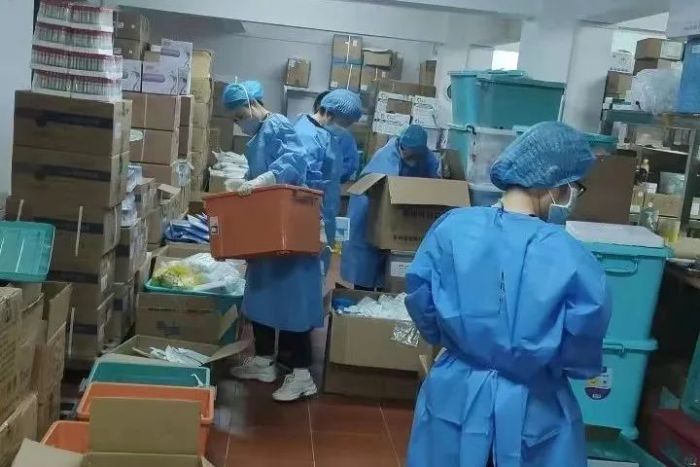 “我们虽然不是战斗在一线的白衣天使,但是我们是党员,就更加应该在不同的岗位上默默地付出,发挥共产党员的先锋模范作用。”郑丽燕介绍,“设备科负责抗疫物资的采购、入库、打包、分配发放、清洗消杀、分拣以及物资数据统计等工作。为保障核酸采样队员能够按时出发采样,设备科人员每天凌晨4:30左右提前到达医院做相关准备工作,冷链箱中放置冰排、将已打包好的物资及冷链箱搬运到球场处分批发放物资;随后清洗、消杀使用后的物资;消杀完成后将剩余物资进行分类分拣;再打包准备次日采样物资等等。这段时间以来,采样量、物资量大,每天需要准备100多箱物资,大家基本都是从凌晨开始工作,中午不停歇,晚上22:00以后才收工。”
