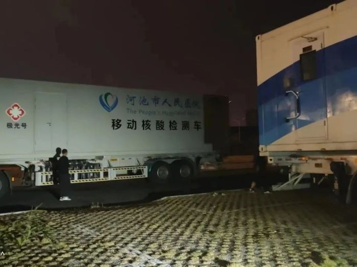 除医疗物资的保障任务外,设备科还承担了核酸检测设备保障工作任务。11月19日,设备科接到紧急任务,设备工程师韦森立即收集几家医院的核酸检测设备需要调试,21:00多设备到达后,韦森顾不上吃饭,立即安装调试好设备,确保及时投入使用。11月21日,再次接到紧急任务,支援桂林的移动核酸检测车到达,需要医院派出设备工程师拆卸并运送设备到指定地点,张然、韦森白天负责外出核酸采样队物资保障任务刚到家,接到通知后二话不说立即执行任务,连夜工作,直到凌晨才完成工作任务。