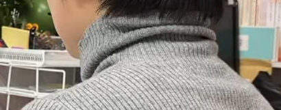 “就觉得会勒到脖子呼吸会不通畅所以我不喜欢穿(高领的衣服)”