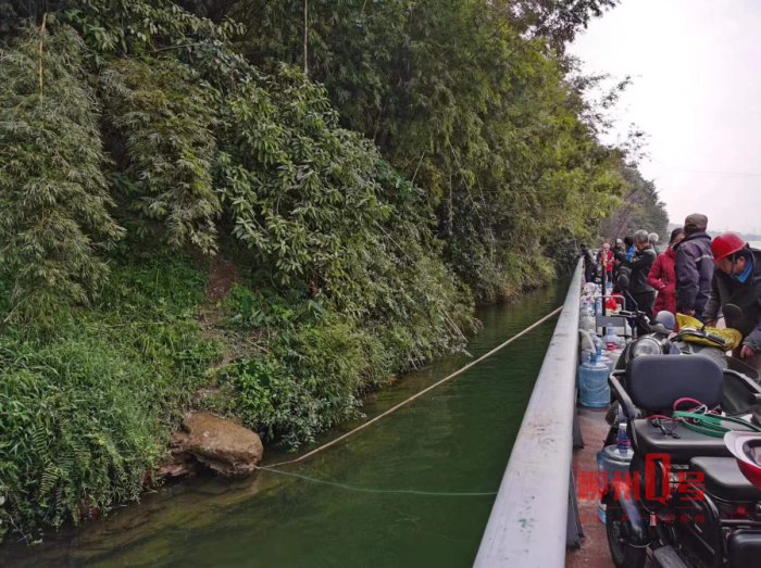 12月6日下午2时许,环江滨水大道靠近龙壁回澜路段,有10余名市民排长队打水,每人至少带了2个水桶。