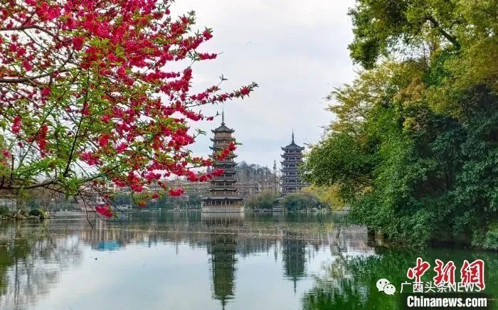 桂林两江四湖景区岸边桃花竞相开放。杨宗盛 摄