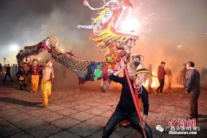 “炮龙节”百龙腾跃吸引游人。俞靖 摄