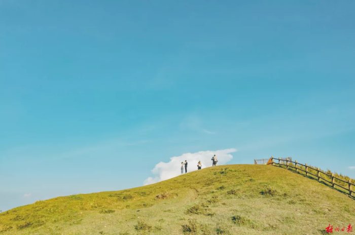 站在天龙顶山地公园的高山草甸,蓝天仿佛触手可及,景色清新得让人心情愉悦。甘泽昌 摄(图片来源:梧州日报)
