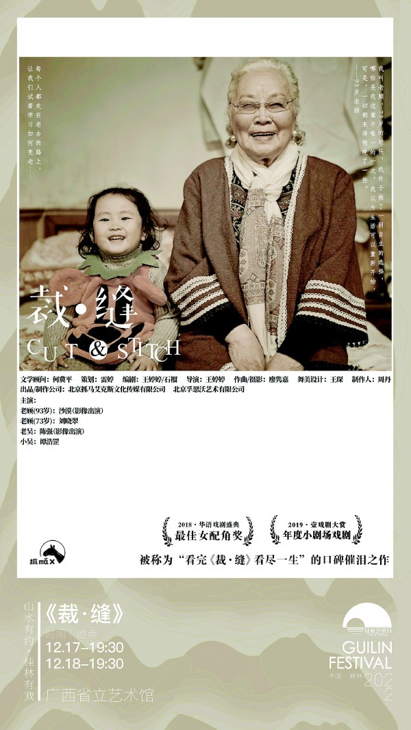 艺术源于生活的实践,扎根于基层。在桂林艺术节的舞台上,许多作品灵感都来源于日常生活。独角戏《象棋的故事》来源于一个偶然的喜好。纪实剧场《裁·缝》则通过“老去”这个话题,多个侧面折射社会变迁、展示人们思想观念的变化。