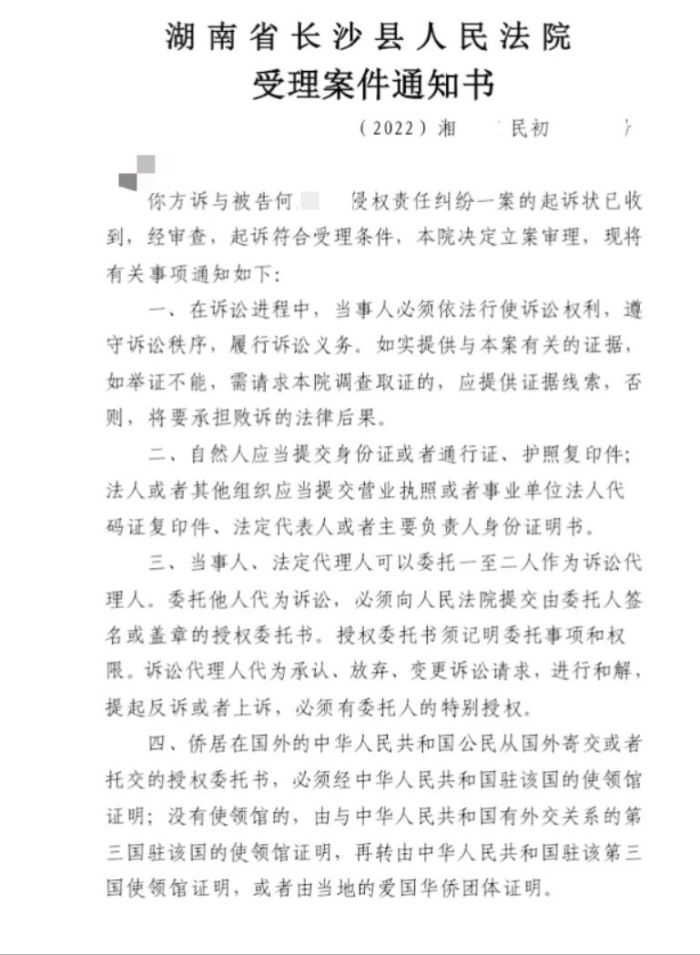 12月6日,毛女士所在公司以侵权责任纠纷,将何某某起诉至法院。12月12日,湖南省长沙县人民法院决定立案审理。晨意帮忙记者尝试联系上何某某,对方一直未接电话。记者表明身份发送短信,截至发稿,未获回复。