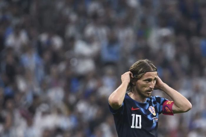 ↑克罗地亚队球员莫德里奇在比赛中。新华社记者 李尕 摄