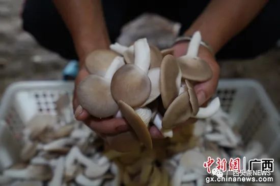 村民展示刚采摘的秀珍菇。黄勇丹 摄