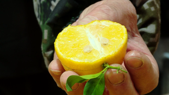 南宁淡村农贸市场水果摊摊主 闭先生:今年干旱,造成果头比较小个点,3.5元一斤。这个水果可以补充维生素C,对人体抵抗力比较强。