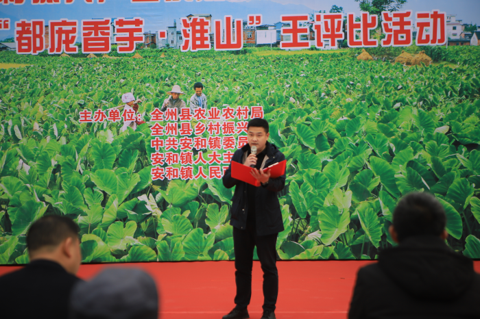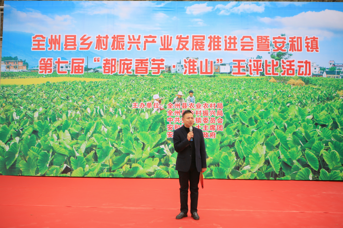 镇党委书记唐青松致开幕词,他指出举办本次活动,主要目的有两个:一是坚持以党的二十大精神为引领,推动农业产业高质量发展,依托区位优势、资源优势、产业优势,因地制宜发展壮大特色产业,持续带动农民增收致富,以产业兴旺助推乡村全面振兴。二是进一步树立安和香芋、淮山这两大传统优势产业品牌,推进我镇农业产业化进程,促进农业增效、农民增收。
