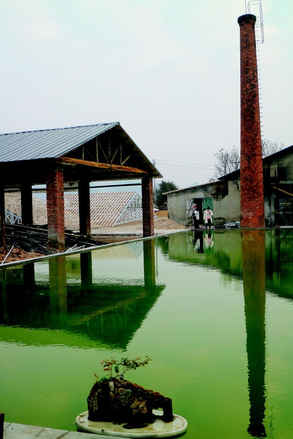 基地里的水池倒映出老烟囱的模样。记者胡晓诗 摄