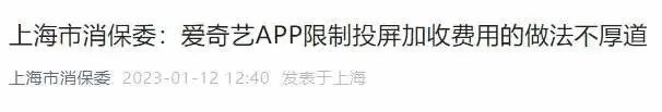 针对爱奇艺APP限制投屏加收费用的做法,上海市消保委认为:投屏是移动端用户正常的使用场景,消费者付了钱,在手机上看还是投屏看都是消费者的权利。平台在APP内限制消费者投屏的做法不合理,想用这种方法加收费用更不厚道。视频平台更无权不当获取手机权限干涉消费者采用第三方APP或者连线等方式投屏。