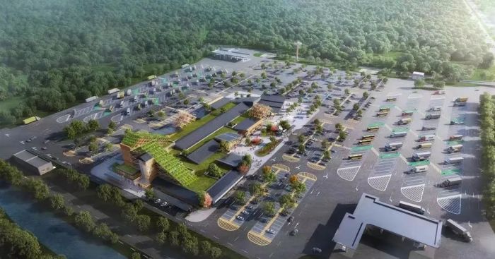 据悉,桂林服务区位于广西壮族自治区桂林市临桂区,项目总体规划布局为服务楼(4F)、维修车间(西侧)(1F)、维修车间(东侧)(1F)、 附属用房(1F)、加油站(西侧)(1F)、加油站(东侧)(1F)及水塔(30m)。项目总规划用地面积 171828 ㎡,总建筑面积15041.94㎡,建成后将会成为广西最大的单体服务区。