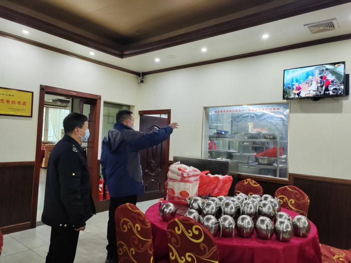 在春节期间预定“年夜饭”较多的龙胜大酒店,检查组重点检查从业人员健康证是否在有效期内、经营证照是否齐全且共识、食品原材料采购索证索票是否齐全、食品加工操作是否规范、餐饮器具清洗保洁是否正规、食品储存、加工、留样各项安全管理制度是否规范等情况。蒋文明指出,作为龙胜老字号餐饮单位,龙胜大酒店要把食品安全工作牢记心间,学习桂林市椿记烧鹅等企业的“明厨亮灶”等一些先进经验,因地制宜创新经营管理理念,切实提升龙胜餐饮行业服务品质。