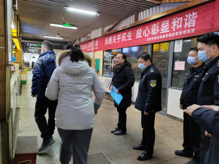 1月17日,龙胜县人民政府副县长蒋文明带队督查春节期间各项安全工作和食品安全“两个责任”机制落实情况,县市场监督管理局局长曾学强及相关股室负责人陪同检查。