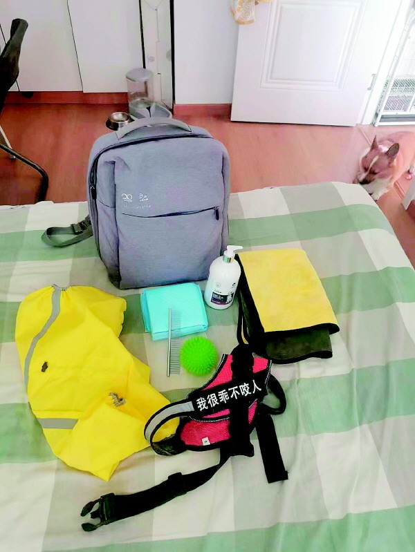 在陈先生的宠物包里,除了狗粮和饮水器,他还装进了尿垫、狗绳,便于在高速公路服务区休息时能让宠物下车活动。因为车程并不算远,所以带着宠物一起回家还算方便。另外,自己的宠物一直生活在城市里,陈先生也想带它去体验一下乡村生活。