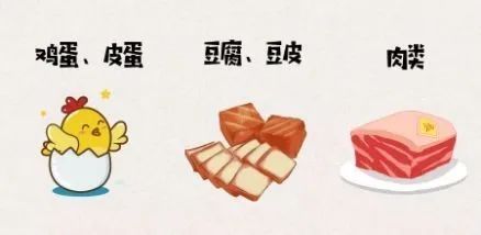 鸡蛋、皮蛋含有丰富蛋白质,可以预防胃部不适,保护胃黏膜;豆腐、豆皮等豆类食品,含有半胱氨酸能解乙醛毒,帮助排泄毒素;肉类等含油量高的菜品,本身含油脂多,可以在胃里形成保护膜,适量使用能护胃。