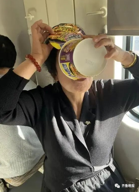还有一个在火车上拍的视频也让网友很欢乐——李先生打算泡碗方便面吃,妈妈说留点方便面汤给她喝,“不爱吃面,我就爱喝这口汤。”李先生泡好方便面后,假装自己已经吃完了,拿给妈妈吃,结果妈妈狼吞虎咽,几大口就把一碗方便面全部吃完了。