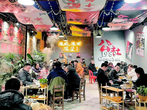 祁女士有两家牛八宝的餐饮店,其中一家位于临江路。据她介绍,店面能接待二十多桌客人,从大年初四开始恢复营业到元宵节,每天都是爆满状态。“最多的时候一个晚上能接待80桌。到了晚餐的高峰期,顾客等位超过一个小时。”她说,店铺主打新鲜的牛八宝,菜品上除了桂林人喜欢的酸辣口味汤底,还有特色鸡汤汤底锅。在店面装修上,选择了时下年轻人比较喜欢的简洁风,吃牛八宝的同时还能“围炉煮茶”。从店里接待的顾客来看,本地客人所占比例约为60%,还有不少外地的游客也前来打卡。“餐饮业的复苏信号很强烈,我们对接下来的市场很有信心。”祁女士说,不只作为经营者感受到了这样的信号,她自己作为消费者同样感受强烈。“桂语茶叙”“大自然”……在桂林一些比较有特色的餐饮店订餐几乎当天的都订不到,需要提前预订。的确,记者在晚餐时间在文化宫几家火锅店前看到,排位的市民不在少数。采访中很多市民都表示,等位一小时都还算是快的了。