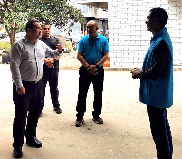 王光宁向阳朔县委书记周彦讲解久大村发展规划(金宝乡人民政府供图)
