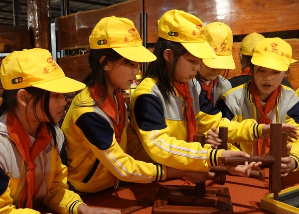学生亲自体验拼接小凳子 卢晓玲 摄