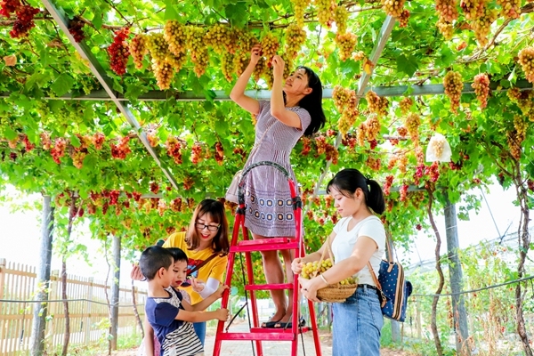 以农促旅,以旅兴农,激发乡村农旅经济活力。大圩镇因地制宜打造提子、优质稻、无公害蔬菜等3个万亩示范基地,投入2735万元着力打造了桂林市五星级田园综合体—灵川县古镇提香核心示范区,培育了熊村枇杷、大圩村草莓、秦岸村提子等精品水果品牌,全镇全年蔬菜产量7.3万吨,水果产量17.3万吨,农村人均纯收入2.5万元。借势乡村游热潮,开发草莓、枇杷、提子采摘体验游等项目,其中,依托大圩村草莓产业优势,打造千亩草莓种植基地,每年12月至次年5月,吸引桂林周边及全国各地游客慕名而来,“摘草莓,去大圩”成为冬春旅游的热门项目。旅游带动周边村民人均增收万元以上。