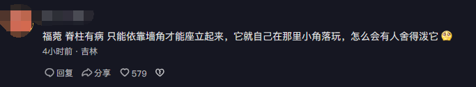 对于福菀被泼水躲在角落一事,网友们也都很心疼,纷纷在评论区表示“怎么会有人舍得泼它”: