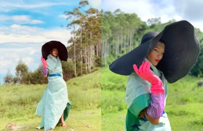 就算没有观众,走起猫步来也是一丝不苟,全然没有乡野的“土味儿”。一个眼神、一个侧身,都散发着超模的气场。