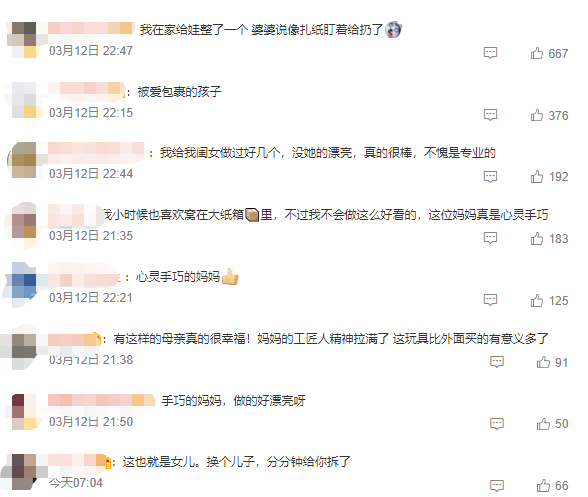 用废纸盒打造梦幻玩具此前也有家长这么做过之前一对母女用废旧材料制作了一座梦幻小镇的视频引发网友关注