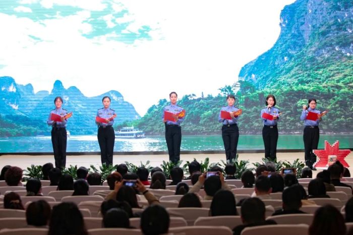 活动中,荣获全国“人民满意的公务员集体”、全国巾帼文明岗称号的桂林漓江风景名胜区综合执法支队带来了精彩的家风朗诵节目,充分展示了在打造世界级旅游城市中主动担当、攻坚克难,坚决为人民守护好一江碧水清流的巾帼风采。