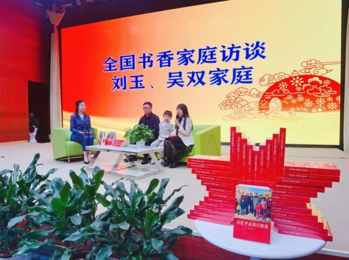 全国首届“书香家庭”刘玉、吴双家庭在访谈中,分享了他们的阅读经验、书香家训以及阅读《习近平走进百姓家》的内心感悟。吴双表示,阅读《习近平走进百姓家》这本书,在潜移默化中更加深刻领会了党的二十大精神,将重视家庭发展,发挥家庭力量,带领小家庭与大时代同频共振。