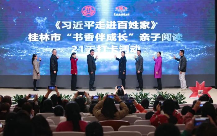 当天,出席活动的领导共同启动了桂林市“书香伴成长”亲子阅读21天打卡活动。