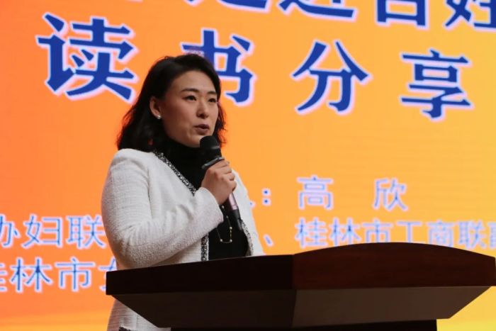 市政协妇联界别委员、桂林市工商联副主席、桂林市女企业家协会常务副会长高欣在分享