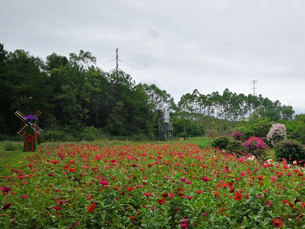 一大片美如童话的烂漫花海成为不少游客度假游览的新选择。灵川镇供图