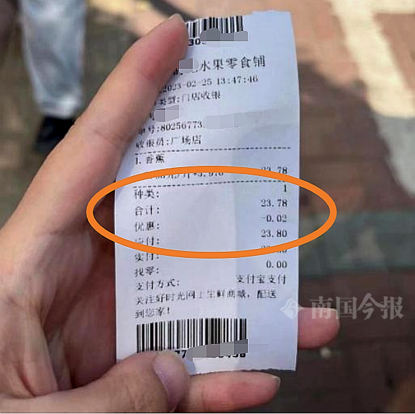 韦女士提供的收费票据显示:优惠-0.02元。图源:柳城县市场监管