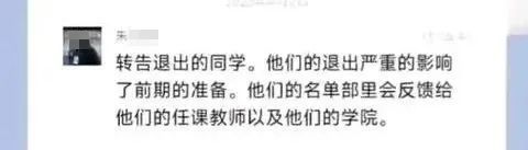 对于因不满退出的学生,朱某表示:“转告退出的同学,他们的退出严重影响了前期准备。他们的名单会反馈给他们的任教老师以及他们的学院。”