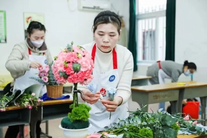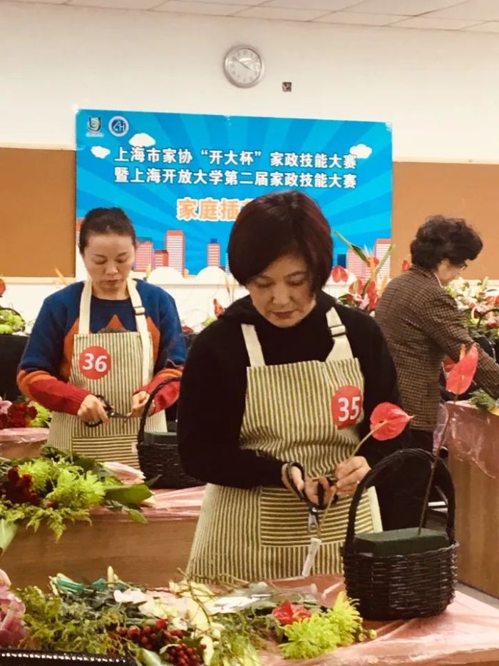 “你这么大年纪了,还读什么书?”从报读家政学专业那天起,相似的质疑就环绕在万金枝的身边,朋友们觉得她“好奇怪”。自2003年跟着老乡从湖南到上海,53岁的万金枝已经在家政行业摸爬滚打17年,做过钟点工、月嫂、育婴师。“没什么文化,只能做这个。”她自幼是孤儿,在政府的帮助下读到小学毕业,但面对上海这座大都市,她总感觉自卑。“小时候没机会读下去,我做梦都在上学。”在梦里,万金枝时常变成女儿的同班同学,两人一起上学。直到48岁时,听说有面向成人的家政学专业,万金枝兴奋不已,“无论能不能毕业,我一定要参与。”2018年,她先报读了上海开放大学的家政学专科,毕业后又成为该校首届家政学本科生。对于盛皋燕来说,家政学专业则意外成为她从家庭迈向社会的勇敢一步。盛皋燕中专毕业,早早结婚生子,成为一名全职妈妈,每天的生活围着女儿转。起初,她之所以报读家政学专科,也不过是“想为女儿多做一些好吃的。”可是,专科学习颠覆了她对家政的刻板印象:“家政不仅是烧菜、保洁,还有插花、收纳等更广泛的内容,包罗万象。”女儿读大学后,凭借家政专科学习到的知识和技能,盛皋燕在附近幼儿园找到一份保育员的工作,这也是她十几年来的第一份工作。为了“更系统的学习,再上一个层次”,她又报读了家政学本科,可仍没逃脱家人的怀疑和嘲讽:“家政有什么好学的?学出来还是干保姆。”