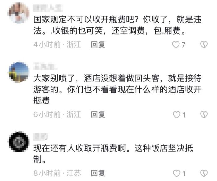 9月29日,有顾客在浙江舟山一餐厅就餐时自带两瓶酒水,餐厅要收取50元开瓶费,引发网友热议。有网友认为顾客自带酒水,酒店收取费用合理,也有网友认为按照规定餐厅不可以收取开瓶费,否则违法。