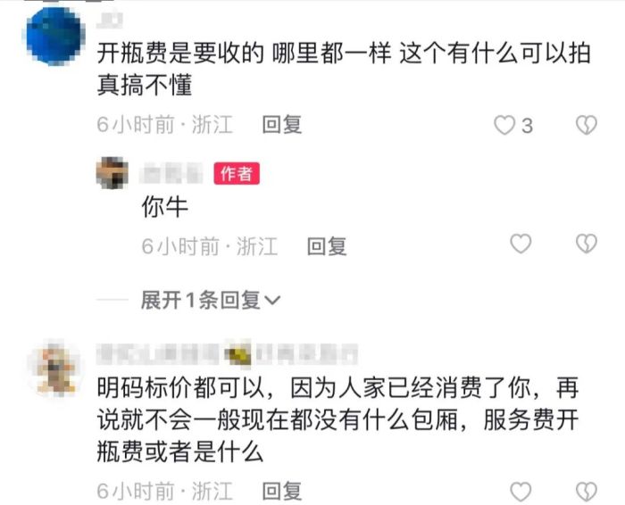 视频评论区,发布者称菜钱一共1500多元。网友热议,有网友认为顾客自带酒水店方收取费用合理,也有网友认为按照规定餐厅不可以收取开瓶费,否则违法。
