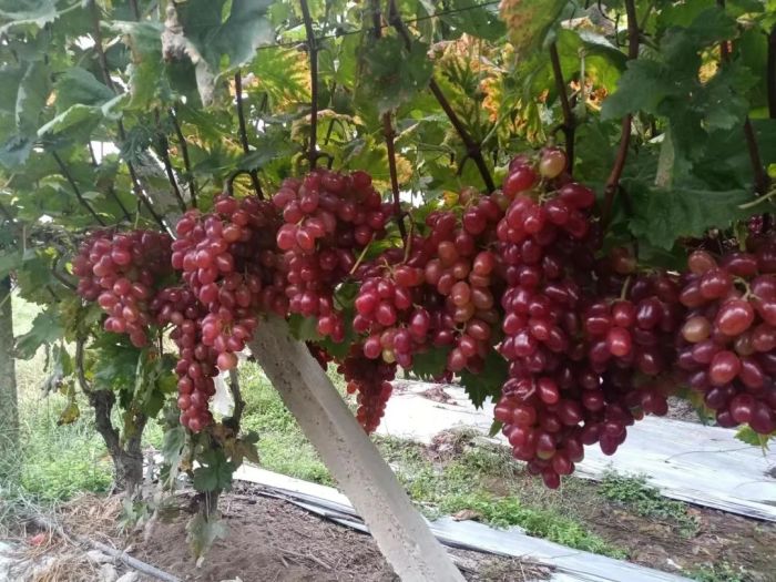 蕉江瑶族乡界顶村的磨盘晚熟红提挂满枝头。