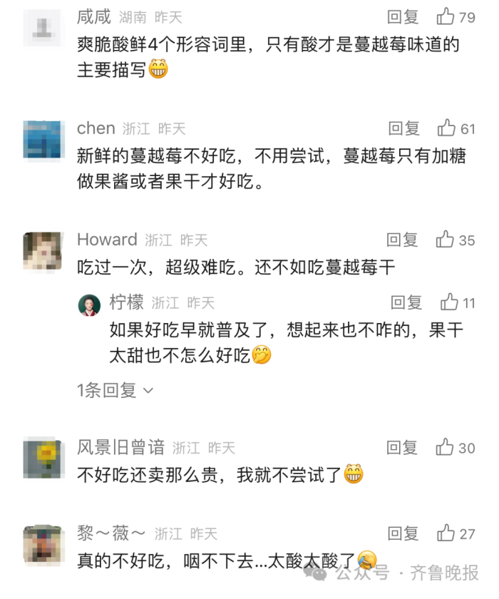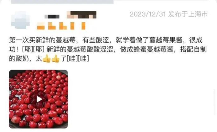 从没吃过新鲜蔓越莓”,还有人还开玩笑,