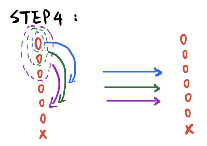 步骤三从这一步开始,我们只考虑当前牌堆中排在第四及第八的两张牌,记为X,其他牌记为0。那么根据上一步的讨论,可以得到当前的牌堆形如: