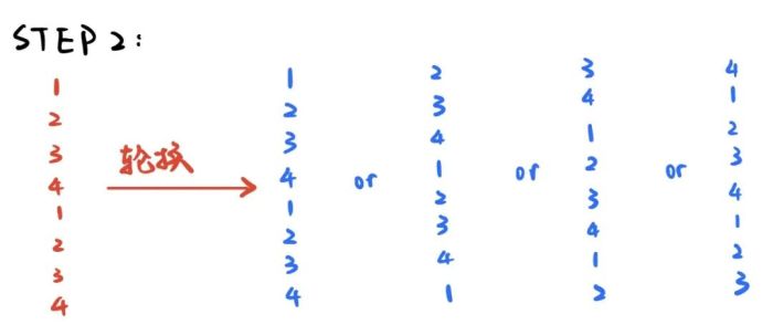 步骤二此时我们可以注意到,无论我们将牌堆顶的多少张牌移到堆底,得到的扑克牌堆编号(从上至下)都只会有以下几种结果: