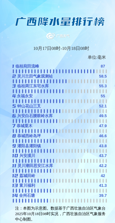 昨天08时至今天(18日)08时,广西大部多云到晴有分散阵雨或雷雨,桂东北昨夜率先受到冷空气影响,部分地区出现小到中雨、局地大雨到暴雨,最大雨量出现在桂林市临桂区宛田瑶族乡流峰村(87毫米,暴雨);昨日白天,广西全区国家气象观测站均没有监测到高温的身影,但大部地区最高气温有30~34℃,“炎值”依旧在线。