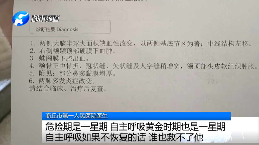 据王先生描述:“我抱我儿子玩,他想让我抱着他抓灯,我就一抱一提一抱一提,第二下没接住直接摔到地下了,直接后脑勺着地。(孩子)一会浑身发软,我就赶紧打了120。医生说是脑出血,脑子一般现在是黑的,现在醒不了,要是能醒的话,不是傻子就是植物人。”