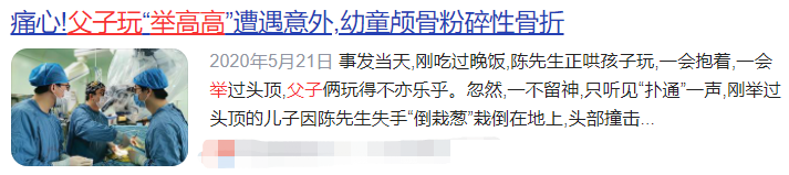 2020年,山东一位爸爸和一岁三个月大的儿子玩举高高时,一个失手,儿子栽倒在地,颅骨粉碎性骨折……