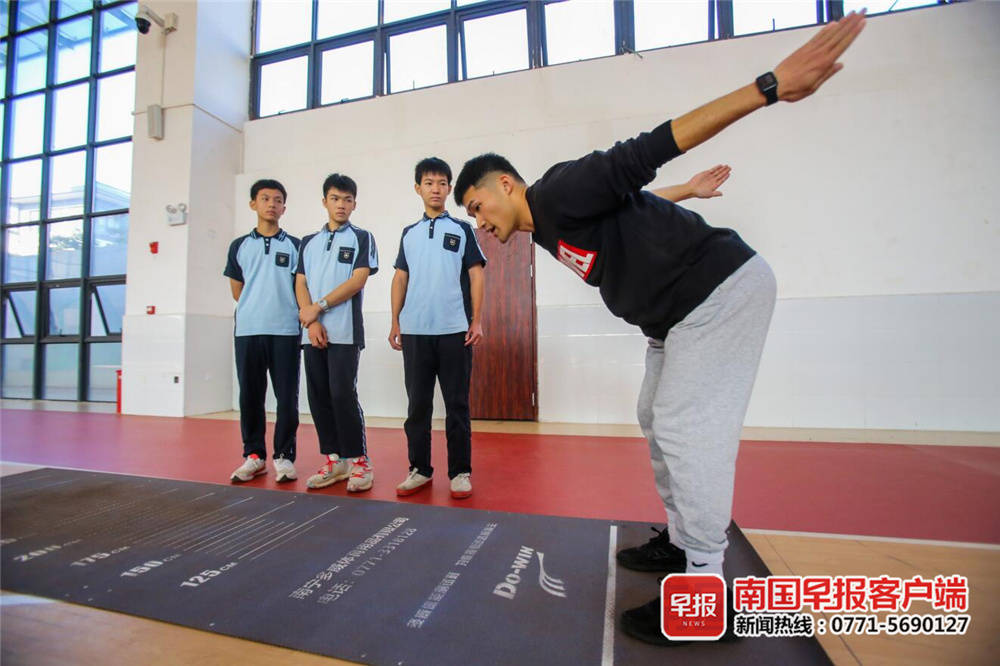 据悉,高考体育生男子立定跳远跳出2.86米即可拿满分,童昱昊目前保持的个人最好成绩是3.34米。一名资深体育特级教师说,在南宁的体育老师中,能跳出这个成绩的并不多。